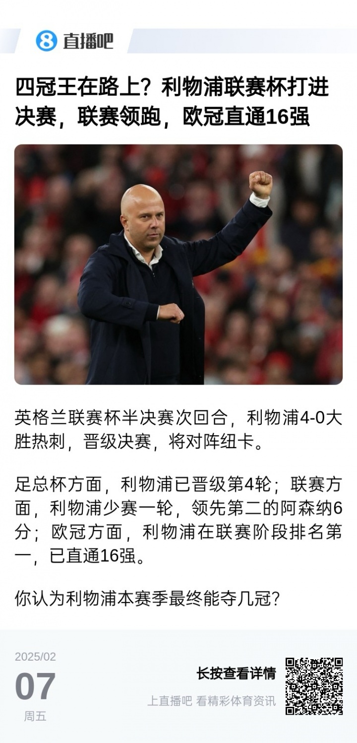 2024/25赛季利物浦2月初四线战绩↓